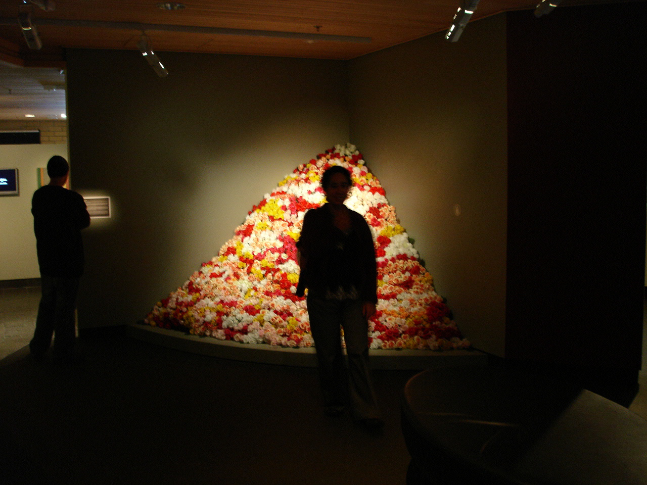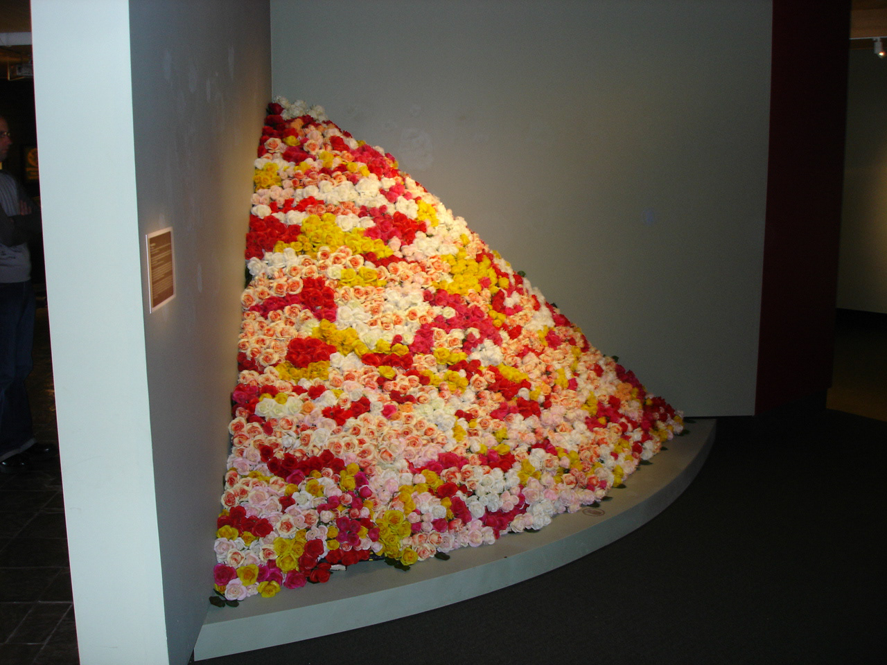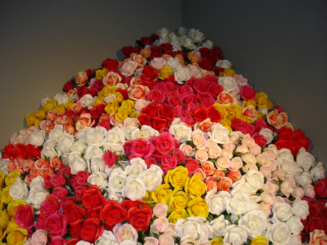 4000 plastic roses made in France circa 1960. Hidden in a warehouse in Hamilton for nearly 40 years. Sound: Various. Burnt with tea mix. Finalist in Waikato Contemporary Art Awards 2006, Waikato Museum.
